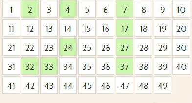 In exemplul nostru am ales 9 numere: 2,4,7,17,24,27,32,33,37 . In momentul de fata, avem 9 filtre care ajuta in selectarea variantelor loto care vor fi generate